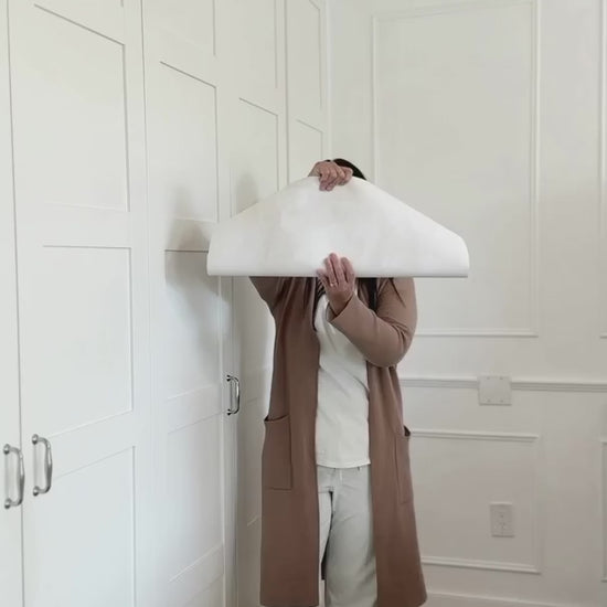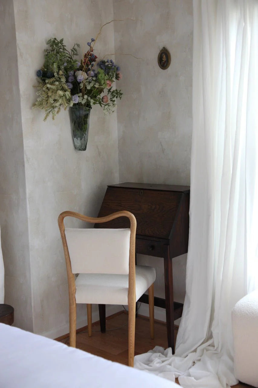 Aesthetic peel and stick wallpaper is a perfect textured limewash wallpaper made from premium woven texture wall fabric with an adhesive backing so your aesthetic wallpaper for walls can be applied (and removed) with ease. This textured wallpaper is inspired by concrete, canvas, venetian plaster and clay and adds a calm neutral vibe to walls.