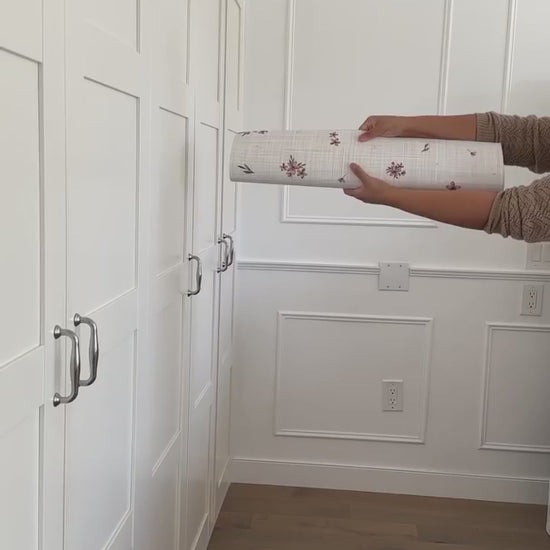 For our antique flower faux grasscloth style wallpaper, we offer a wallpaper previewer which shows how your peel and stick wallpaper design will look on the walls of your bedroom, bathroom, office, kitchen and more.