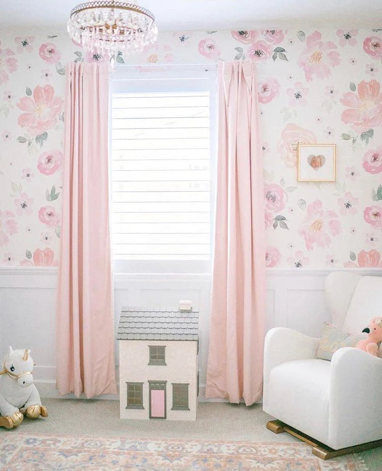 Our removable peel and stick wallpaper for walls is an easy way to channel professional style (without hiring a professional!) and transform your home decor. Bella floral peel and stick pink wallpaper has an adhesive backing and is simple to apply and remove.