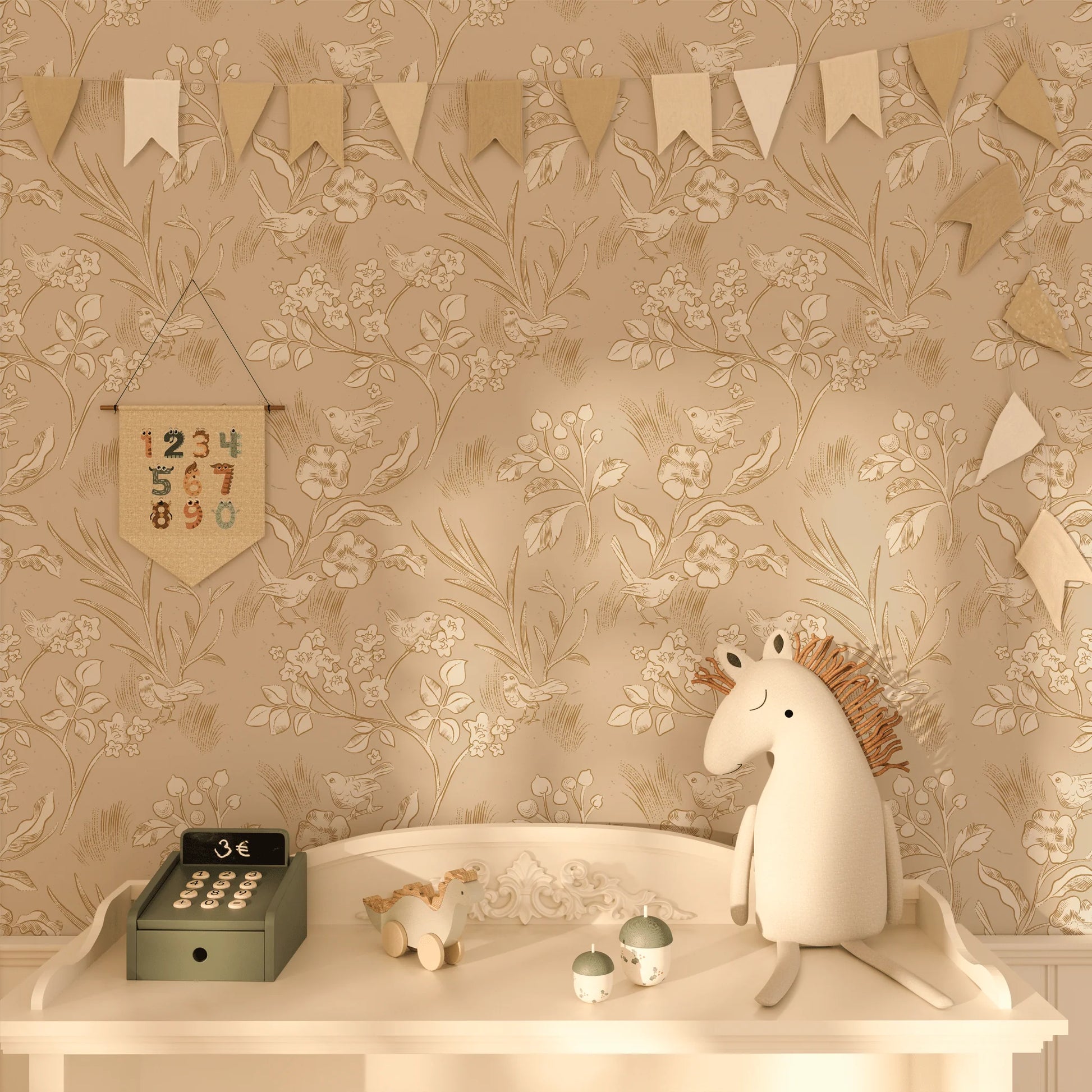 Our removable peel and stick wallpaper for walls is an easy way to channel professional style (without hiring a professional!) and transform your home decor. This whimsical bird and blossom peel and stick wall paper has an adhesive backing and is simple to apply and remove. You’ll love that our peel and stick wallpapers are: