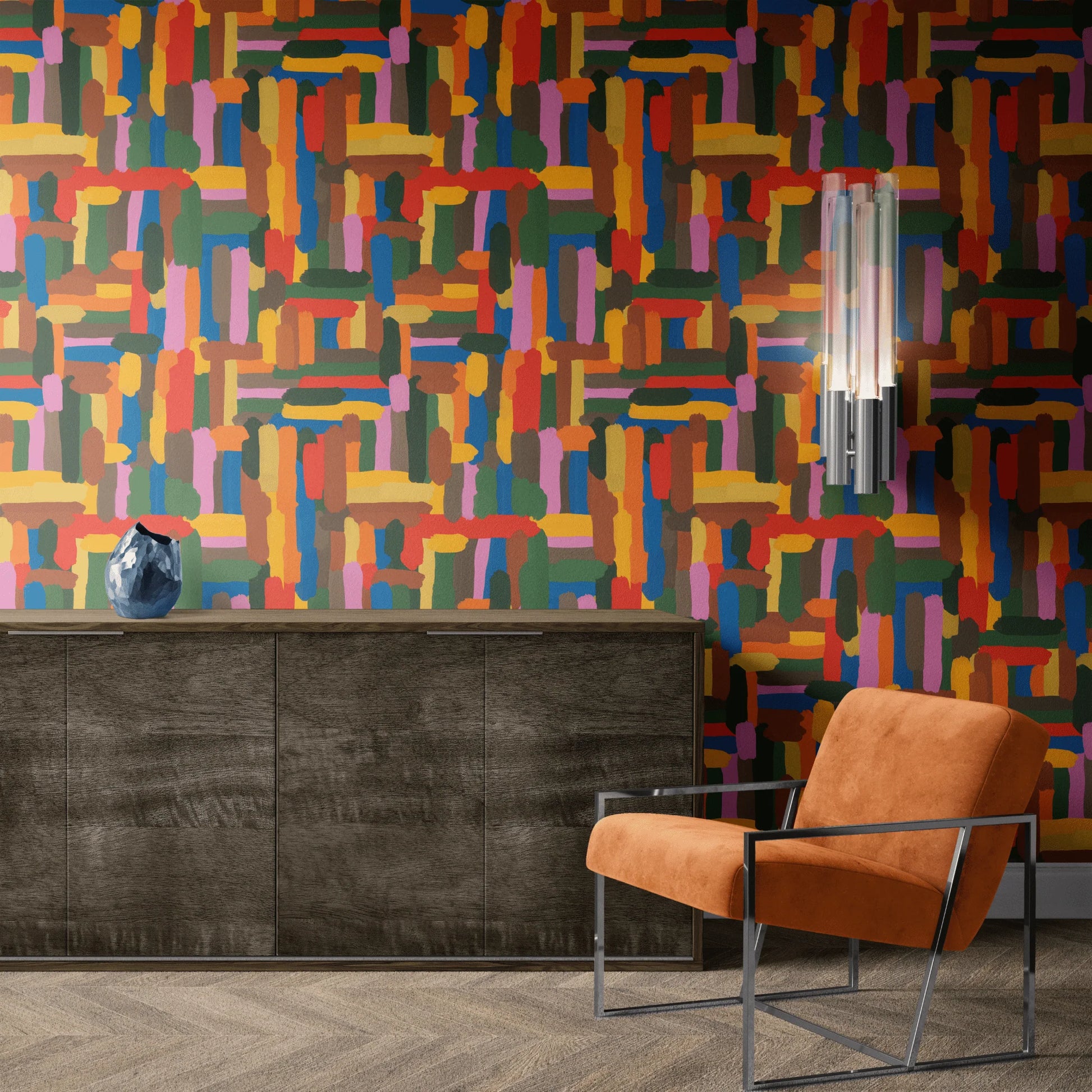 Featuring a dynamic brushstroke pattern in rich, vibrant hues, this bold renter-friendly wall paper design adds energy and personality to any room in your home.