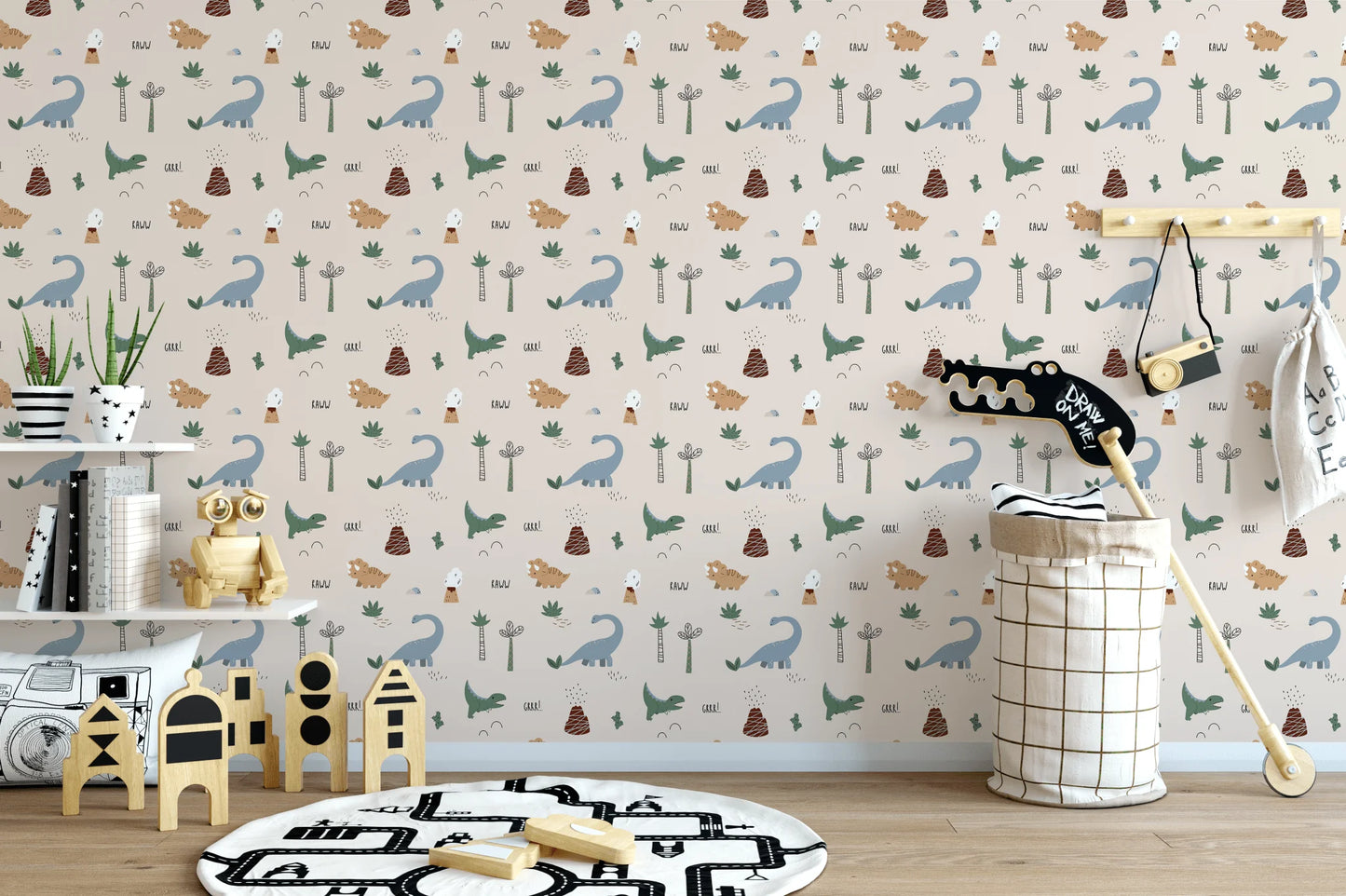 Transform your child’s room into a prehistoric adventure with our Dinosaur Adventure Wallpaper. Featuring charming illustrations of dinosaurs, volcanos, and plants in soft, neutral tones, this design adds a playful yet stylish touch to any kids’ space. Perfect for nurseries, playrooms, or young dinosaur lovers’ bedrooms, this wallpaper sparks imagination and fun, bringing the Jurassic world to life.