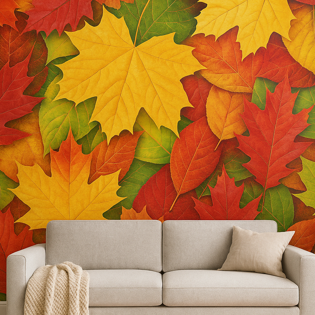 Bring the warm and inviting spirit of fall into your home with our “Essence of Autumn” wallpaper. Inspired by the natural charm of fallen leaves, this design showcases a rich tapestry of deep reds, golden ochres, mossy greens, and vibrant oranges. Each leaf is rendered with artistic detail and soft texture, creating a sense of depth, movement, and authenticity on your walls.