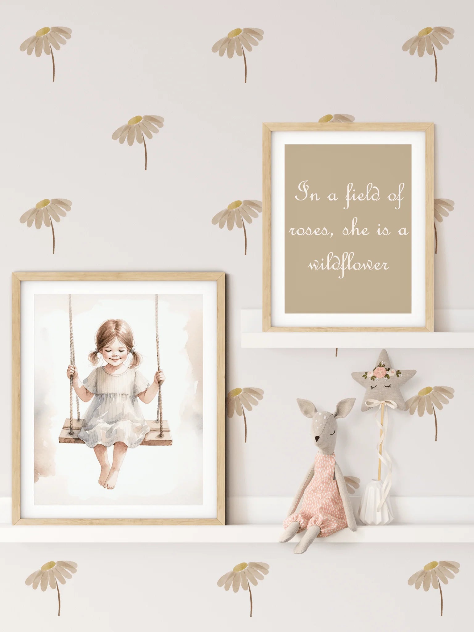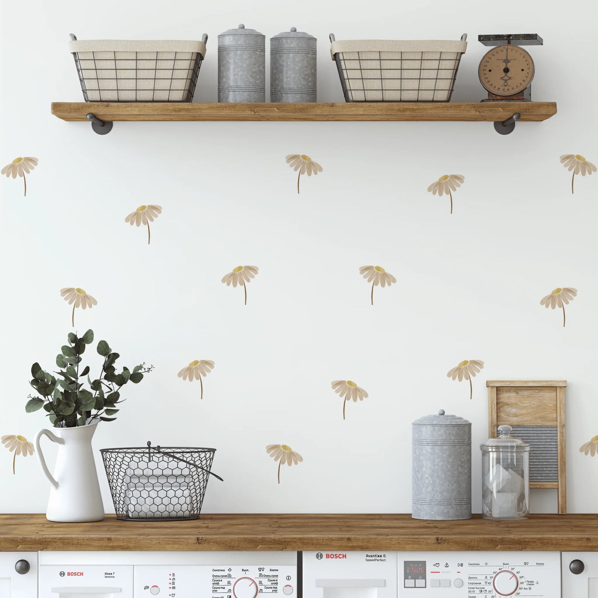 Bring a soft, whimsical touch to your walls with our Golden Meadow Tiny Floral Daisy Wall Stickers. Perfect for creating a custom pattern that complements your nursery, laundry room, or any cozy space. Designed in a neutral palette, these delicate decals add a charming boho vibe to your decor. Transform any room effortlessly with these easy-to-apply, peel-and-stick floral decals.