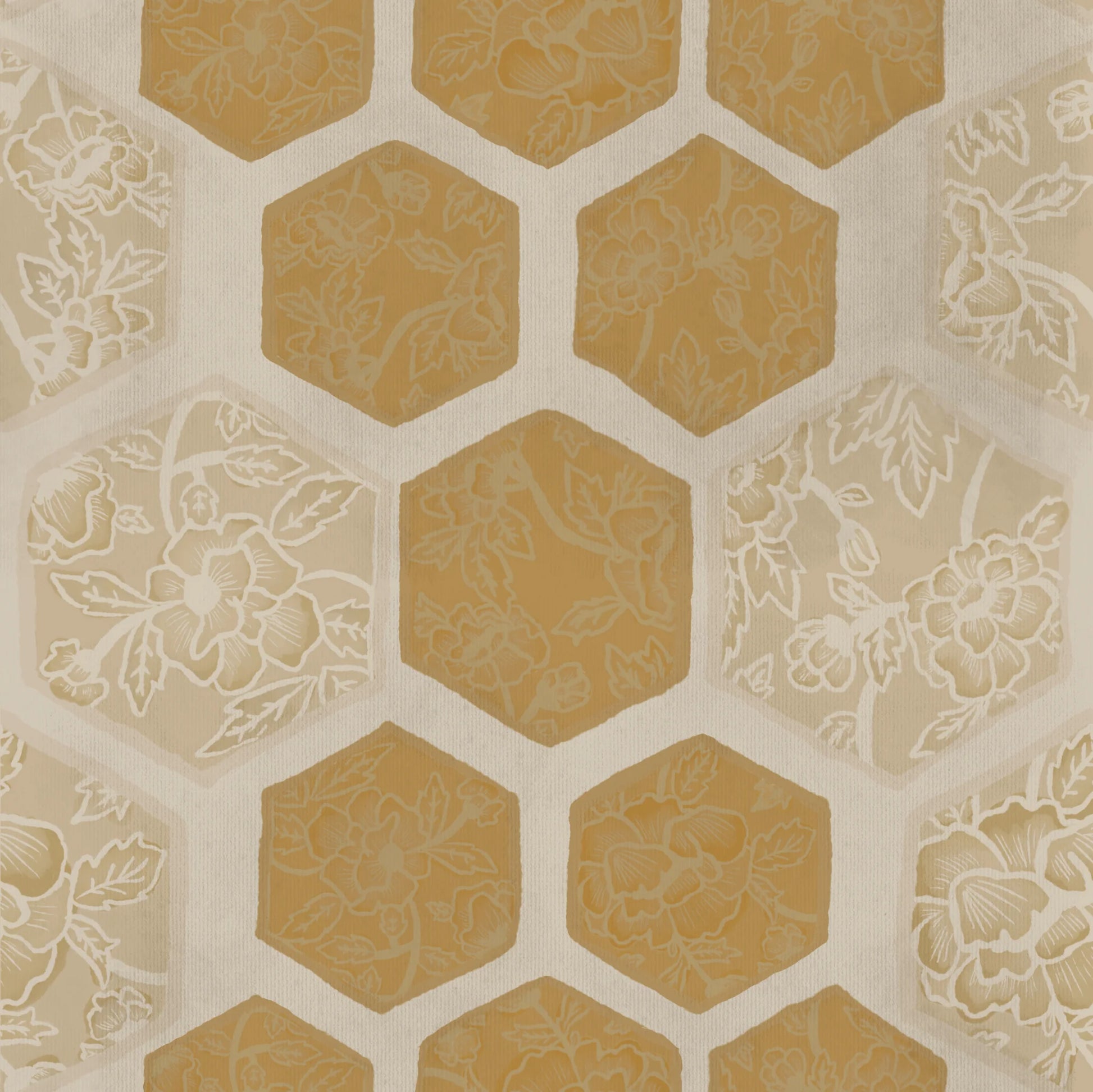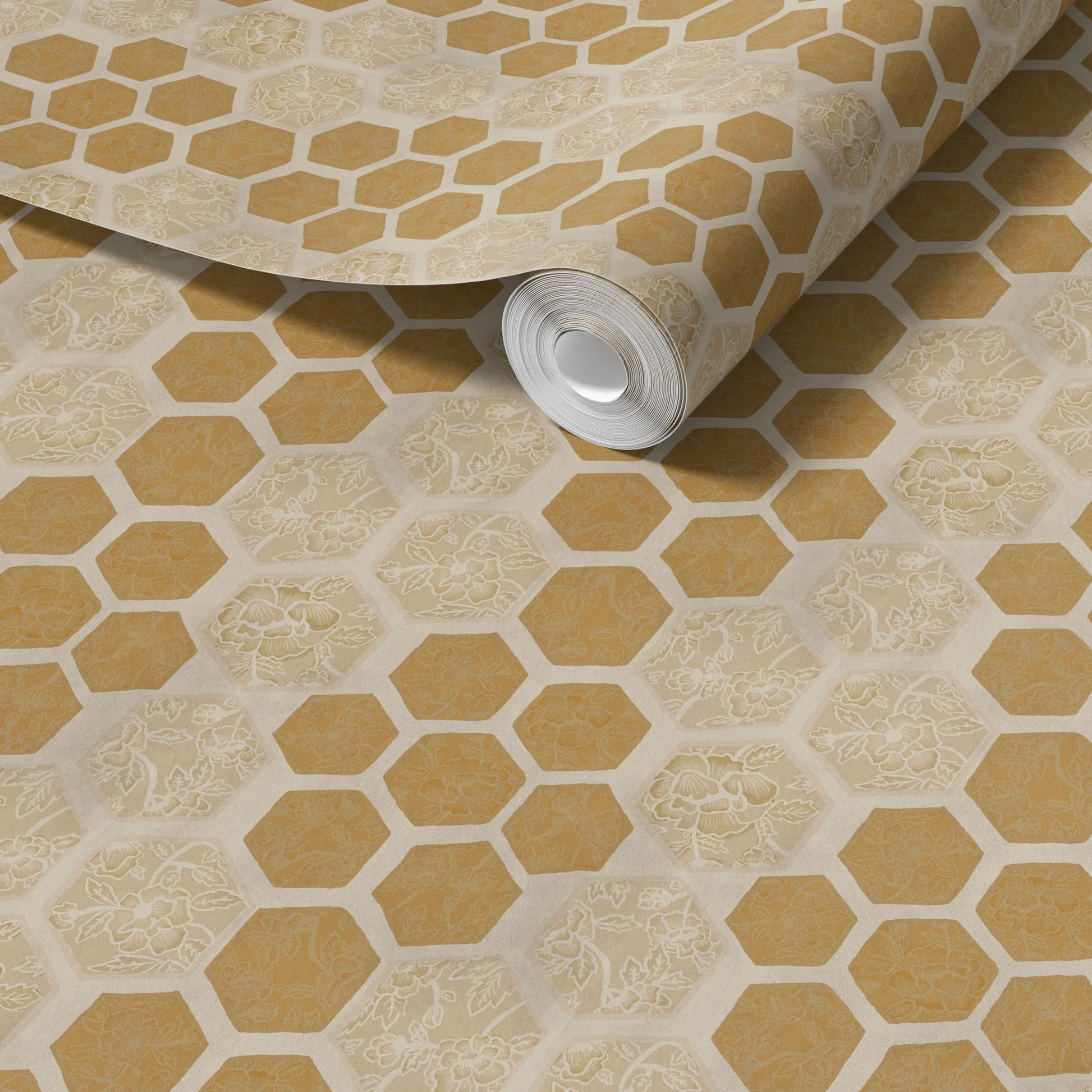 Transform your space with our Honeycomb Flower Wallpaper, featuring a sophisticated gold floral pattern within geometric hexagons for a modern yet classic interior design statement. Simply peel and stick wallpaper to any wall to instantly update your home decor and create a beautiful accent wall.