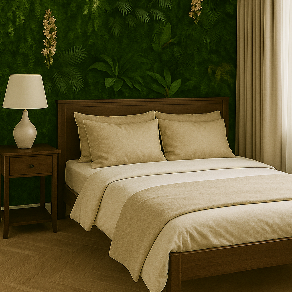 Turn your bedroom into a serene retreat with this lush botanical wallpaper featuring cascading cream flowers and rich green foliage. The design brings depth, texture, and a natural elegance to any space, perfect for creating a calm and stylish atmosphere. Ideal for accent walls in modern bedrooms or relaxing areas where nature-inspired decor shines.