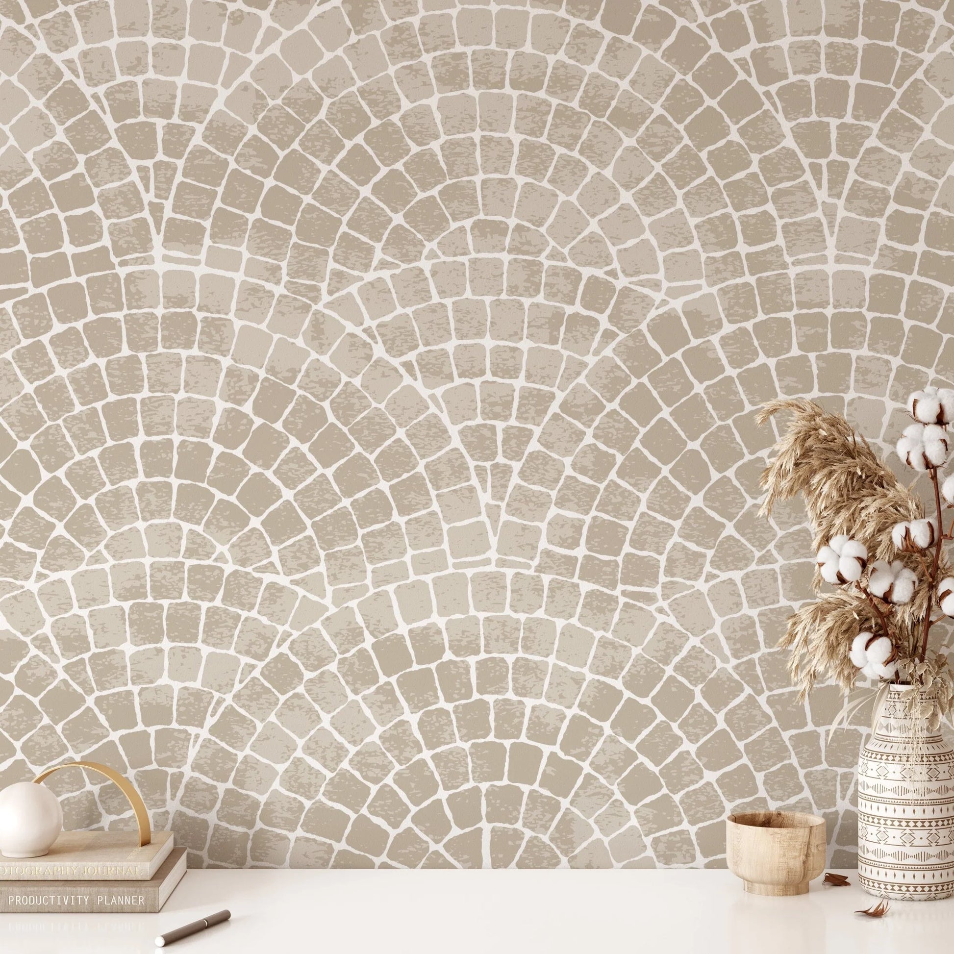 Bring warmth and texture to your space with our Natural Mosaic Tile Wallpaper. Featuring a beautifully detailed faux tile design in soft neutral beige tones, this wallpaper adds rustic charm and modern sophistication to any room.