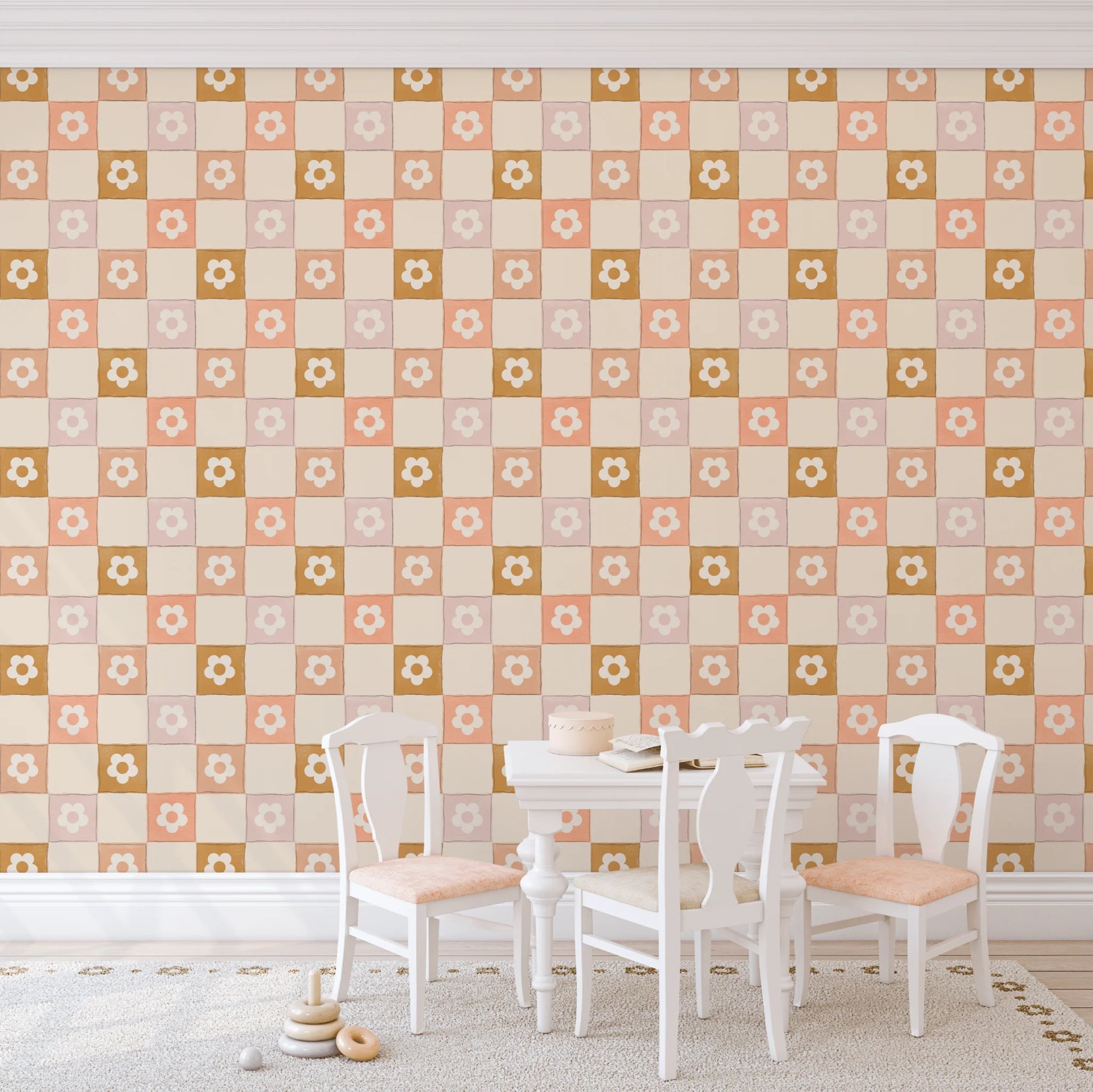 Bare wall? Let’s make it beautiful! Our pastel checkered removable wallpaper is an easy way to channel professional style (without having to hire a professional!) to transform your interior space and evoke instant joy.