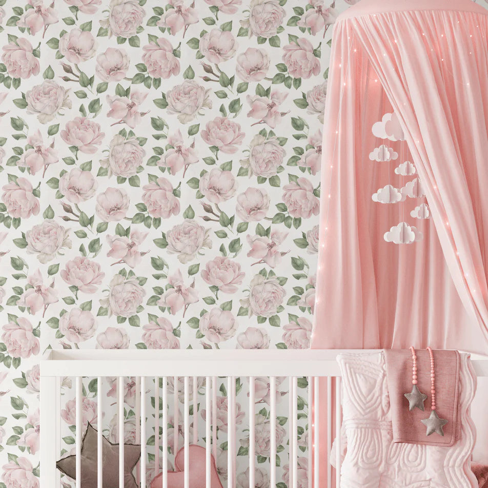Our removable peel and stick wallpaper for walls is an easy way to channel professional style (without having to hire a professional!) and transform your home decor. Snowy rose peel and stick wall paper has an adhesive backing and is simple to apply and remove. You’ll love that our peel and stick wallpapers are: